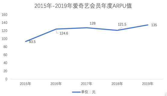 根据财务报告数据中的会员收入/订阅会员公式,爱奇艺会员在2018年的ARPU值为121.5元,到2019年将进一步增加至135.0元,大幅增长.