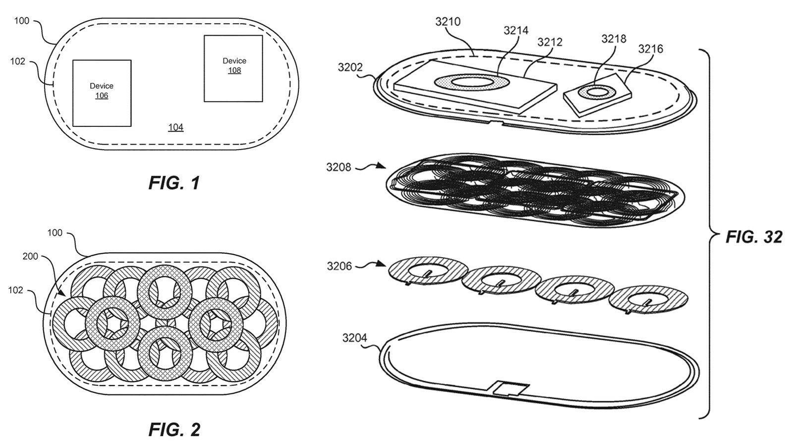 Apple设计了一种非常复杂的机制来实现这两个功能. 传统的无线充电器一般只有1-2套感应线圈,通过电流,在充电线圈与手机内部的线圈之间会产生电磁感应,从而给手机充电. 根据后来披露的专利文件,苹果试图在AirPower中将32个密集线圈彼此叠置. 这样,它们可以同时为多个设备充电,只要将设备放在板上,就可以将其中一个线圈“对齐”以实现充电.