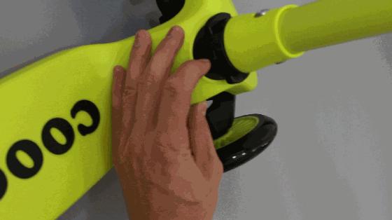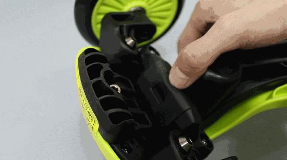 ▲解锁后,这款凉爽的踏板车的转向角可以分别向左和向右30度,基本上可以满足孩子们的使用需求.