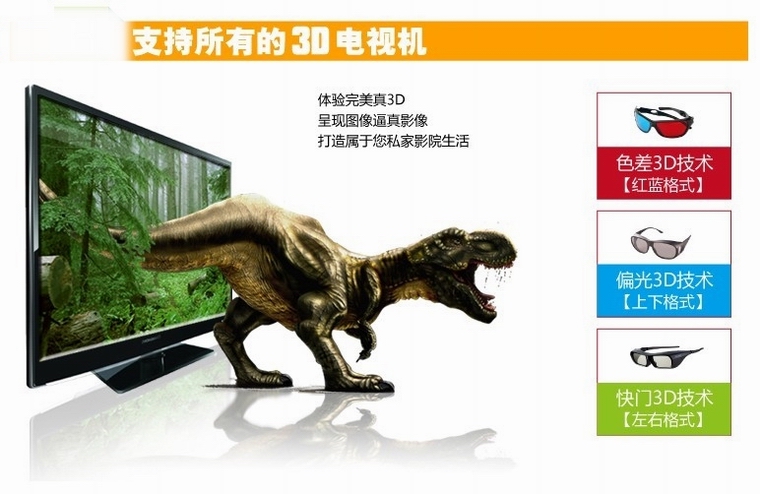 让您的3D电视不再成为摆设品!开博尔K6支持所有3D格式,并兼容所有3D电视,完美真3D输出,