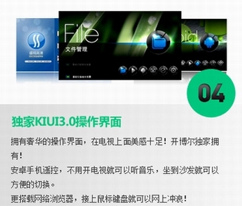 开博尔K6通过与众多视频服务网站及正版片源提供商的合作,免费为消费者提供上万部优质的电影、综艺节目及电视连续剧。内容实时更新,与院线同步,电影画质能达到720P,画质直击商场演示效果!