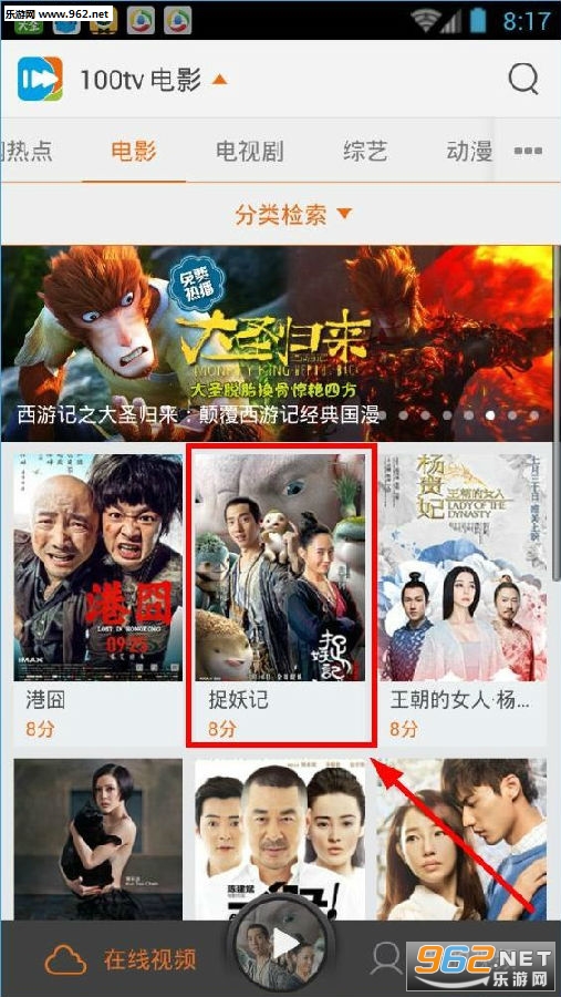 1. 打开喜欢的电影和电视剧. 这是“电影”类别中“捕捉怪物”的示例;