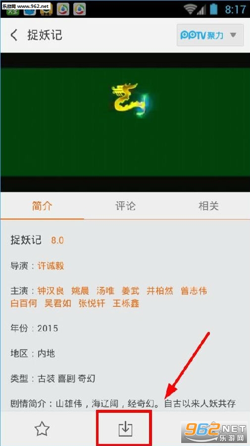 2. 进入“ Monster Catching”的播放页面后100tv高清播放器电视版,单击下面的“ Download”按钮;