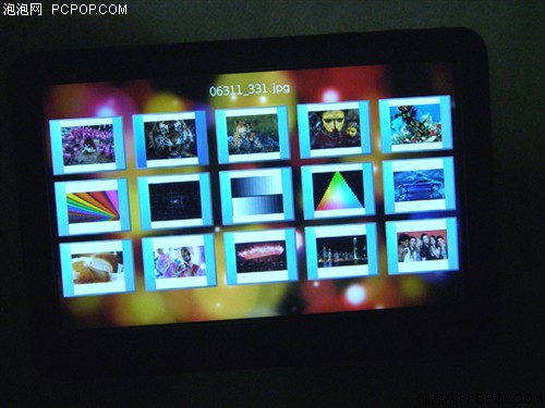 打开用以测试屏幕表现的图片功能,V8000HDV对所有文件实行清晰的路径区别和文件夹分级管理,在选择本机磁盘、移动盘或USB外设,直至进入最后一级文件夹后,图片以缩略图预览的方式显示,方便了用户选择,但同时也在一定程度上降低了显示速度(整个界面显示约需6秒)。V8000HDV支持JPG、BMP、GIF、PNG等图片格式,即使对高分辨率图片的打开速度也令人满意,动态GIF图能轻松应对。