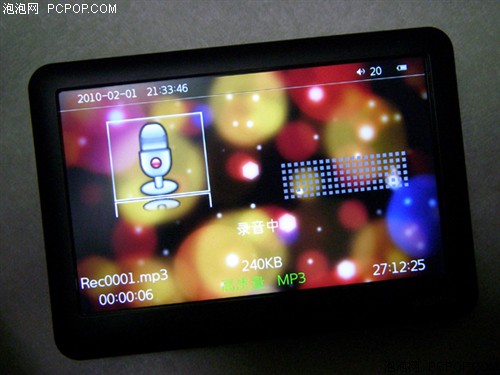 V8000HDV同时具备收音机和录音功能,但功能实现和设置都很简单。收音机功能仅支持支持支持自动/手动搜索电台、FM发射,并不支持FM录音和背景收听功能。录音方面支持高中低MP3三种音质选择,通过顶部M键进行切换,日常基本的记录需求完全可以满足。
