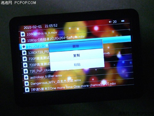 续航方面,V8000HDV拥有良好的表现,支持DC充电器及电脑USB接口智能充电,需要3-5小时充满。通过机内的电源管理软件可以看出V8000HDV在电量管理方面的“聪明智慧”。实际使用中,视频播放可达到3-4小时,音频播放则可持续8小时左右。