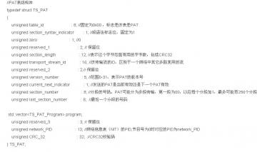 总下简单的说就是,解析ts的过程就是通过找到PAT表,从PAT表中找出对应存在的节目的id,按照这些id找到这些节目的PMT表,从中获到这些节目总的相对的媒体数据id,然后通过这些id,再从ts文件中找到这些文件的es数据,来完成解码或者别的什么操作。