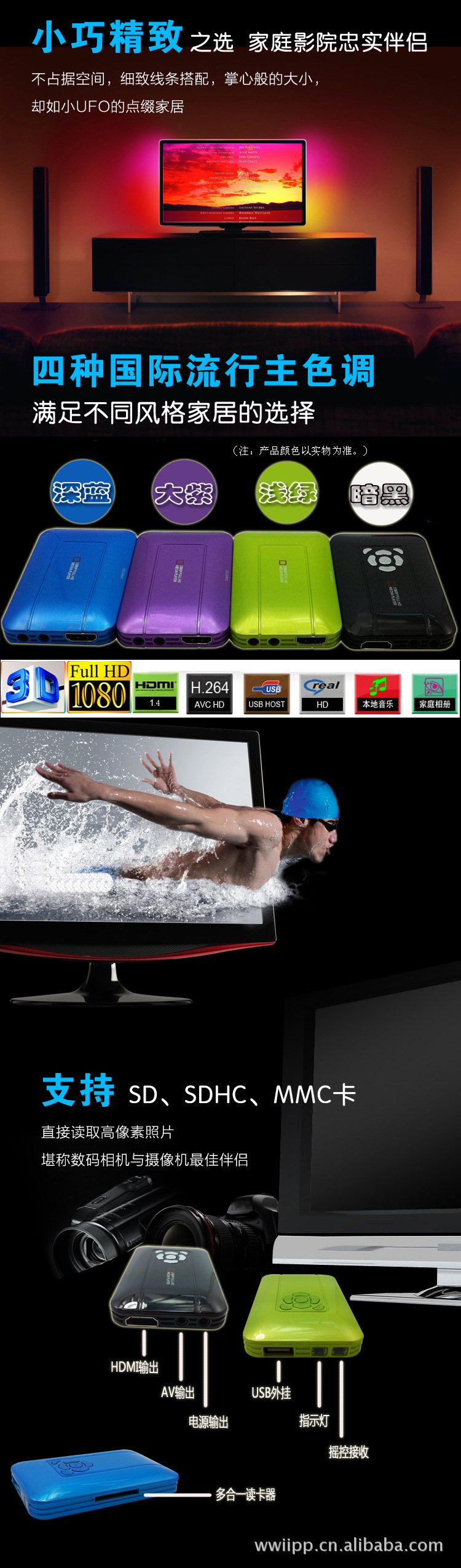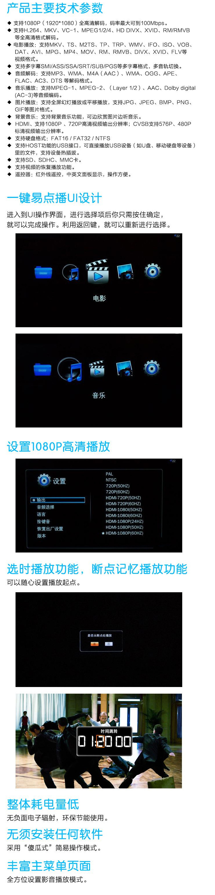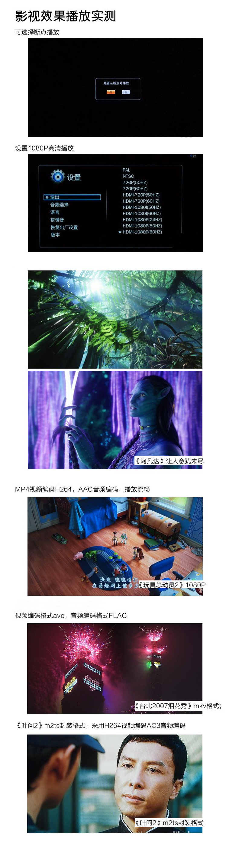 3. 音频: 支持MP3,WMA,WAV,APE无损,OGG,AAC,LPCM,FLAC,AC3,DTS,VC1等格式.