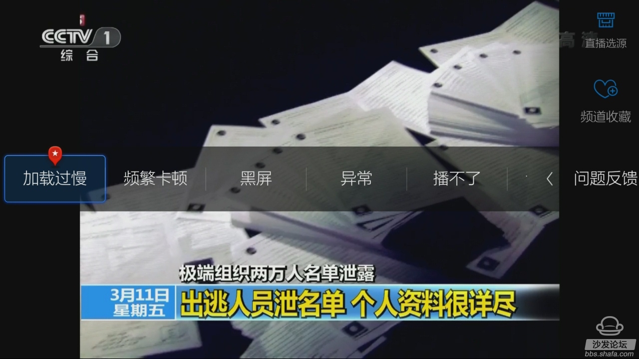 观看实况广播时,按菜单功能按钮可进行实况广播观看的详细设置,例如“解码方法”,“屏幕比例”,“源选择”,“收藏”和其他功能. 值得一提的是,“ Small Micro Live”还亲密添加了“问题反馈”功能,以接收来自大多数电视用户的实时反馈并首先解决该问题. 用户体验非常好.