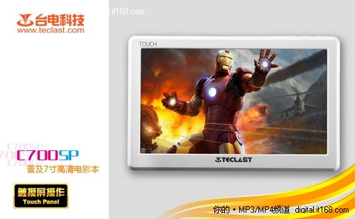 【IT168 资讯】C700SP是台电科技最近发布的一款7寸触屏高清播放器,官方报价为499元/8G。相比前作C700,台电C700SP最大的特点便是采用了触摸屏+按键的双操作方式,使用起来更加便捷直观。台电C700SP采用了7寸800×480的屏幕,主控为目前主流的BOXCHIP高清方案,支持绝大部分高清视频播放。