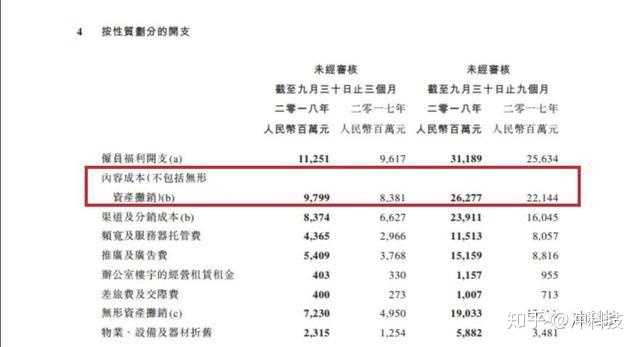 腾讯在2017年和2018年前三季度的内容成本图元/腾讯控股2018年第三季度报告