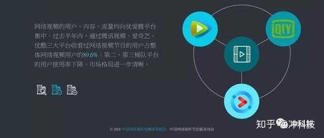 根据《 2018年中国网络音像发展研究报告》,2018年上半年,通过尤爱腾观看视频节目的用户比例达到89.6%. 2018年1月,《华京视点》的综合视频APP排名显示,爱奇艺,腾讯视频和优酷分别以5.09亿,4.82亿和4.22亿活跃用户排名前三.