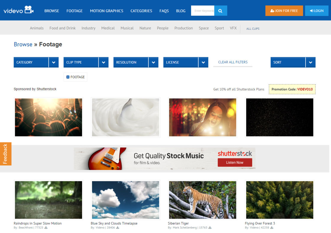 除了大量的视频资料外,Videvo还提供了Motion Graphics资料,例如大家都熟悉的电影开头的倒计时,可以免费下载. 应该注意的是,许多Videvo的资料不是CC0协议,但是它们自己的Videvo标准许可或CC3-实际上等同于CC0,后者也允许用户随意复制和编辑,但要求原始名称为被签名的作者.