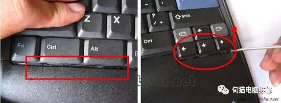 然后用右手的小螺丝刀轻轻撬起键盘.