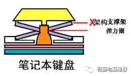 =在卸下键盘盖之前,我们首先需要讨论笔记本电脑键盘的结构. 由于笔记本键盘比台式机键盘薄得多,因此键盘设计人员有必要完全打破传统台式机键盘的设计理念. 为了使具有移动性能的笔记本计算机足够薄,必须减小键盘的厚度. 这意味着笔记本电脑键盘的设计人员必须努力应对键帽模块的高度和行程. 结果是改变了键盘的操作模式,从而产生了为笔记本电脑键盘设计的“剪刀脚结构”. “剪刀脚架构”也称为“ X架构”,如下所示: