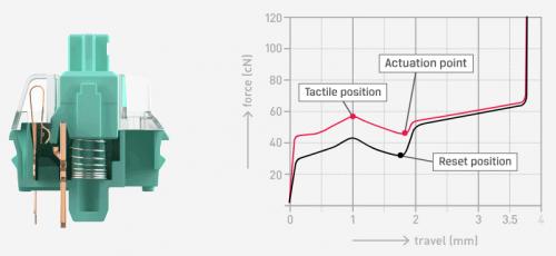 不可否认,机械键盘自问世以来已有近40年的历史. 在此期间,出现的关键轴非常丰富,但玩家真正识别的唯一轴通常是黑色轴,绿色轴,茶轴和红色轴. . 这次,HyperX Aqua轴和茶轴的感觉非常相似,其触发弹性为45克,触发行程为1.8毫米,总行程为3.8毫米,惊人的使用寿命为8000万次击键. Aqua轴和红色轴之间的最大区别是,红色轴是线性轴,而Aqua轴是无声段落轴.