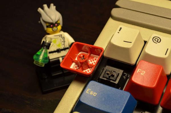 键帽是指按下键时手指触摸的东西. 它套在轴上,可以卸下以方便清洁键帽和清洁键盘内部. 建议在卸下键帽时使用拔键器,否则轴可能会拔出.