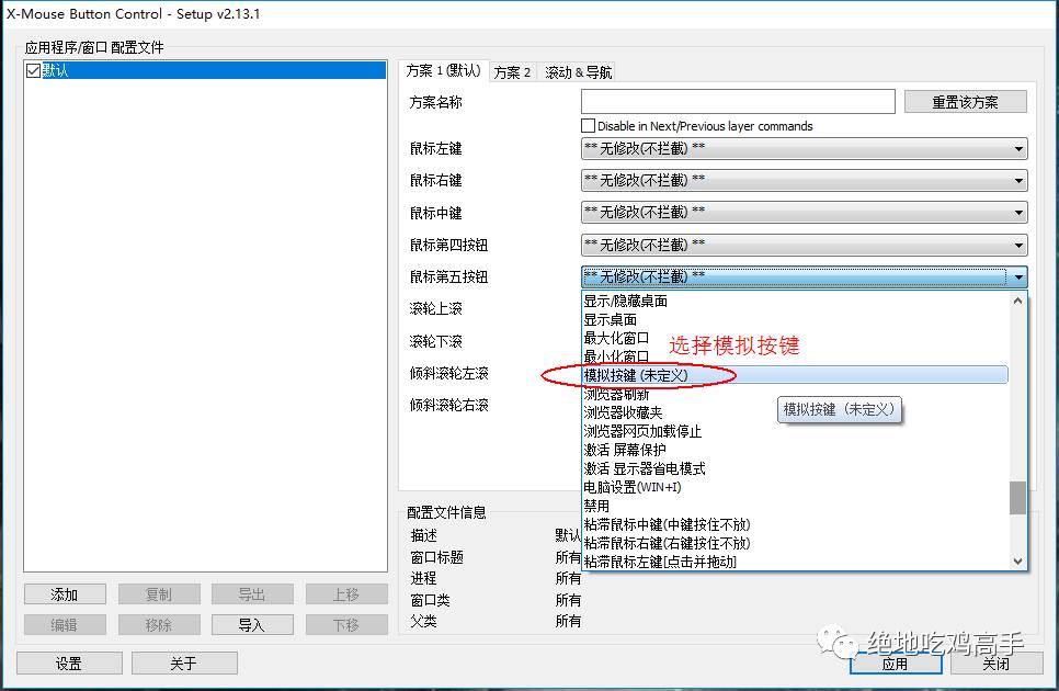2. 转到要设置的按钮(例如,这是“第五个鼠标按钮”),然后选择“模拟按钮(未定义)”.