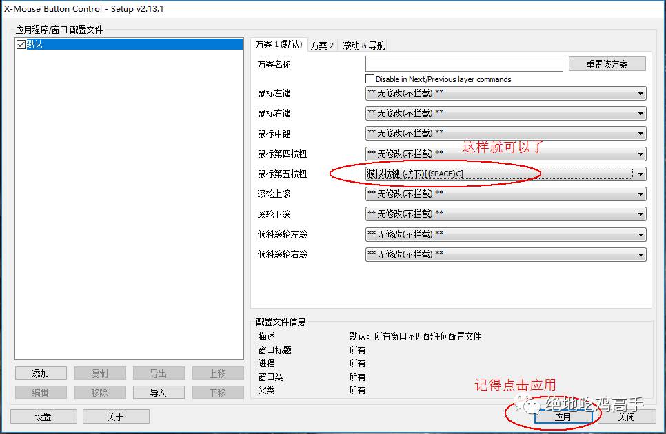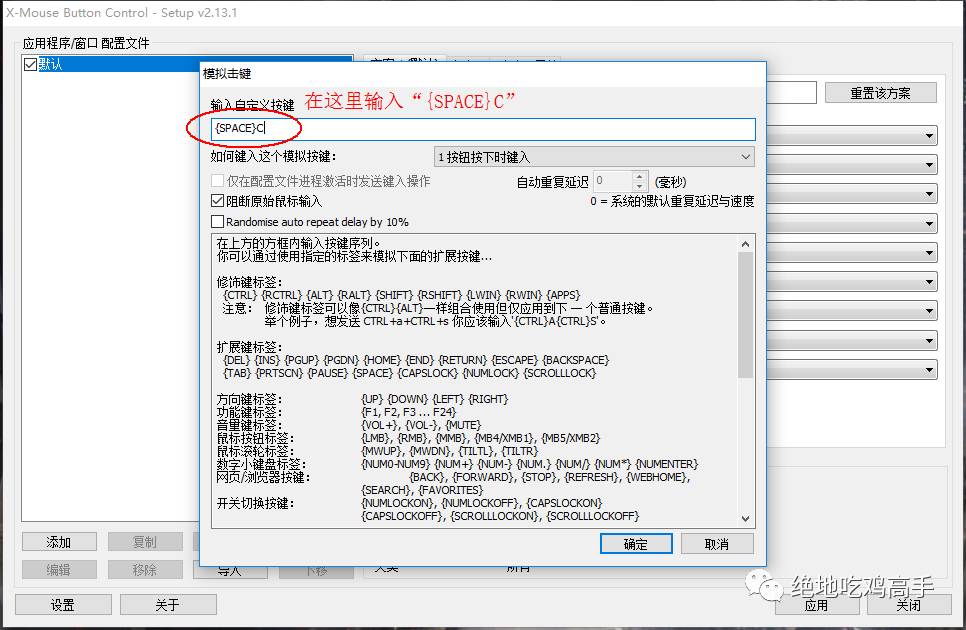3. 在“输入自定义键”中输入“ {SPACE} C”(引号中的内容),单击“确定”,最后,请记住单击“应用”,然后将其关闭.