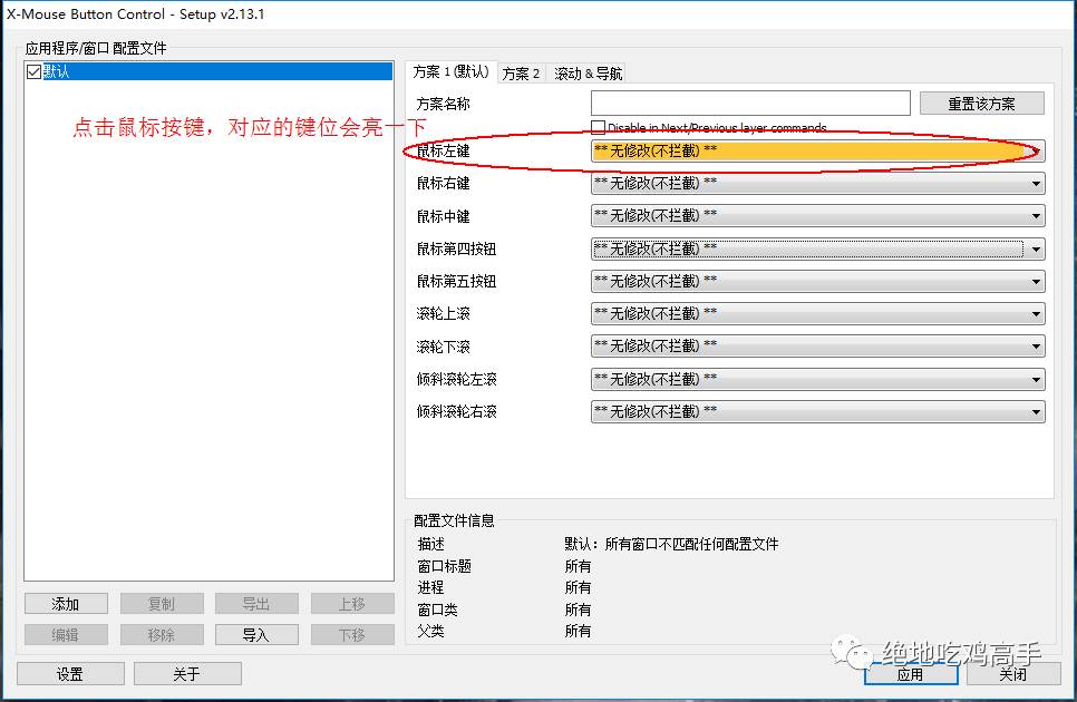 1. 安装完成后,打开程序,找到与您要设置的按钮相对应的位置,然后单击按钮以使其突出显示. 例如,我在这里的单机上单击鼠标左键,第一行被突出显示.