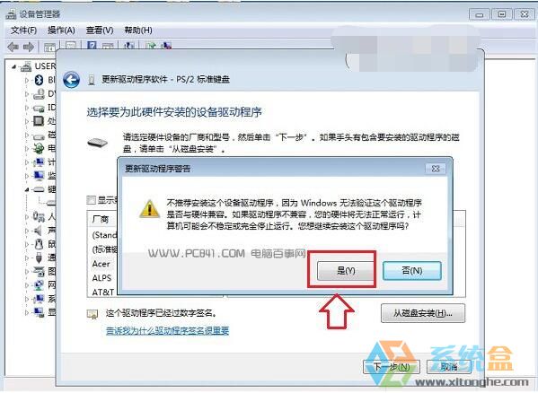 七. 最后,将弹出一个“安装该设备的驱动程序(系统盒)而没有腿铠的信息,因为Window无法验证此驱动程序是否与硬件兼容...”,在这里我们直接单击“是”. 底部,如下所示.