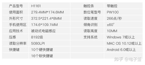 这是H1161的参数表. 压力灵敏度和识别速度都比较高. 如果要使用它,请访问官方网站并下载驱动程序安装. H1161的大小与展开的16格式书籍的大小大致相同. 使用起来不会太大或太小. 手写笔的前面有一个硅胶套,可以防汗和防滑. 长期使用可以帮助减轻疲劳. 手写板和手写笔都具有快捷键,可以根据学习软件进行设置.