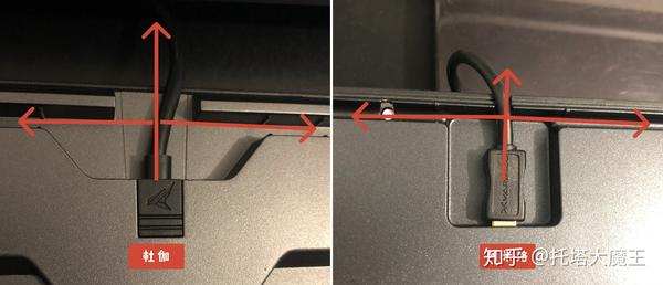 我宁愿为了舒适和美观而牺牲便携性;所以这一次我直接输入了这两个有线的,但是即使如此,也必须考虑有线的细节. 这个细节在键盘接线槽下面,这时,两个键盘都非常好,直接的T形接线槽,中间是直出口,左右两侧都有出口,可以自由选择. 至少由于布线问题,笔记本电脑不会影响键盘的放置.