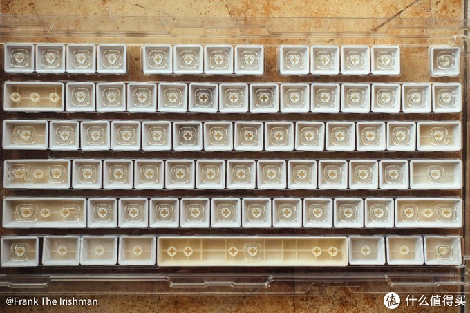 在我看来,原始键帽中使用的PBT材料相当不错. 美中不足的是,当您仔细观察时,键帽上的字符是粗糙的. Amilo的键帽没有透光的作用,但是所使用的材料明显优于原始的Ganss键帽. 在背面,实际上有些粗糙. 我没有强迫症. 如果我不拍这组照片,就不会发现此问题. 键帽还有另一个问题,稍后会在感官部分提到.