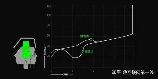 但是,在2014年之后,Razer修改了原始轴,并推出了绿色轴和橙色轴. 2017年左右,轴的使用寿命大大增加. Razer的绿色轴与原始轴一致. 工厂的蓝色轴的触发压力为50g,击键为4.0mm,触发点为1.9mm,触发点与重置点之间的距离为0.4mm. 与原始工厂的蓝轴相比,其触发速度更快,并且Razer绿轴的使用寿命为8000万次,比原始绿轴的5000万倍高.
