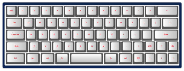 由于上一篇文章提到标准60键盘的面积很小,但是功能键比较繁琐,因此相应的解决方案是在一定程度上减少60键盘上的键长,增加更多的键来实现相应的目的。即,专门安排了60个键盘。这种类型的键盘通常与标准60键盘大小相同,但是具有更多的按键和更多的功能。当然,为了使用有限的空间,还牺牲了键帽的性,这意味着基本上不可能为这种类型的键盘更换任何一套OEM键帽。