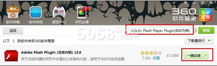 第一种如下图所示:打开电脑中“360软件管家”搜索"adobe flash player?(非IE内核)"点一键安装。