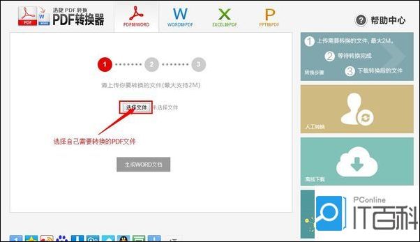 二、上传需要转换的PDF文件。迅捷pdf转换器版