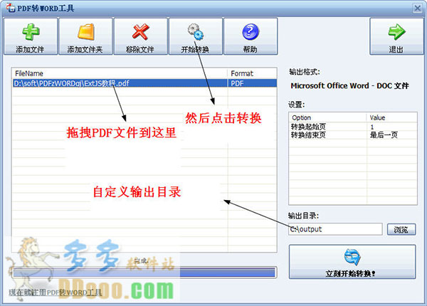直接拖拽文件或者添加文件都可,点击转换,完成退出!