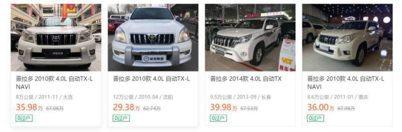 10年的普拉多开了快8年了,市场价格就没有30万以内的(包括事故车)。