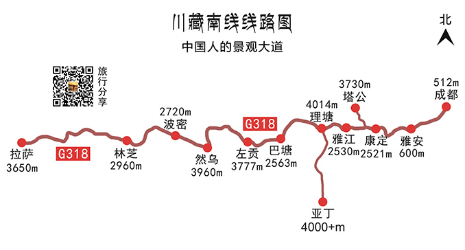 我们即将要走过相同的路线,川藏南线;