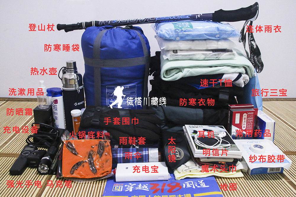 上图是我的徒搭装备,主要的都在这里了(有没有看到有两块火锅底料,没办法,谁让我是热爱火锅的四川人呢