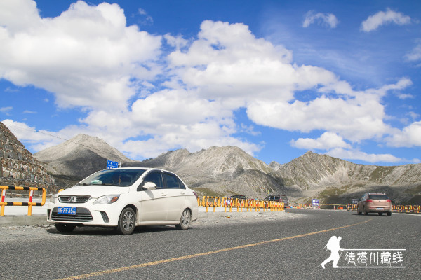 继续边走边搭车,一辆南充老乡为我们停了车,虽然他们不是去新都桥,但是愿意捎我们一程,徒步搭车,能向前搭一段路,我们就可以少背着包走一段。老乡带着我们翻越第一座高山垭口——折多山垭口。车主是无数次经过这里了,但见我们是第一次来,主动停车让我们下车看看,顺便拍照。