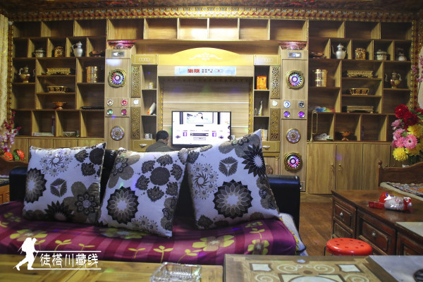 晚饭后,叔叔阿姨邀请我们到他们的藏式客厅,明明就是一个KTV嘛,康巴汉子就是这么豪爽。我们已经忘记我们这是在旅行路上。