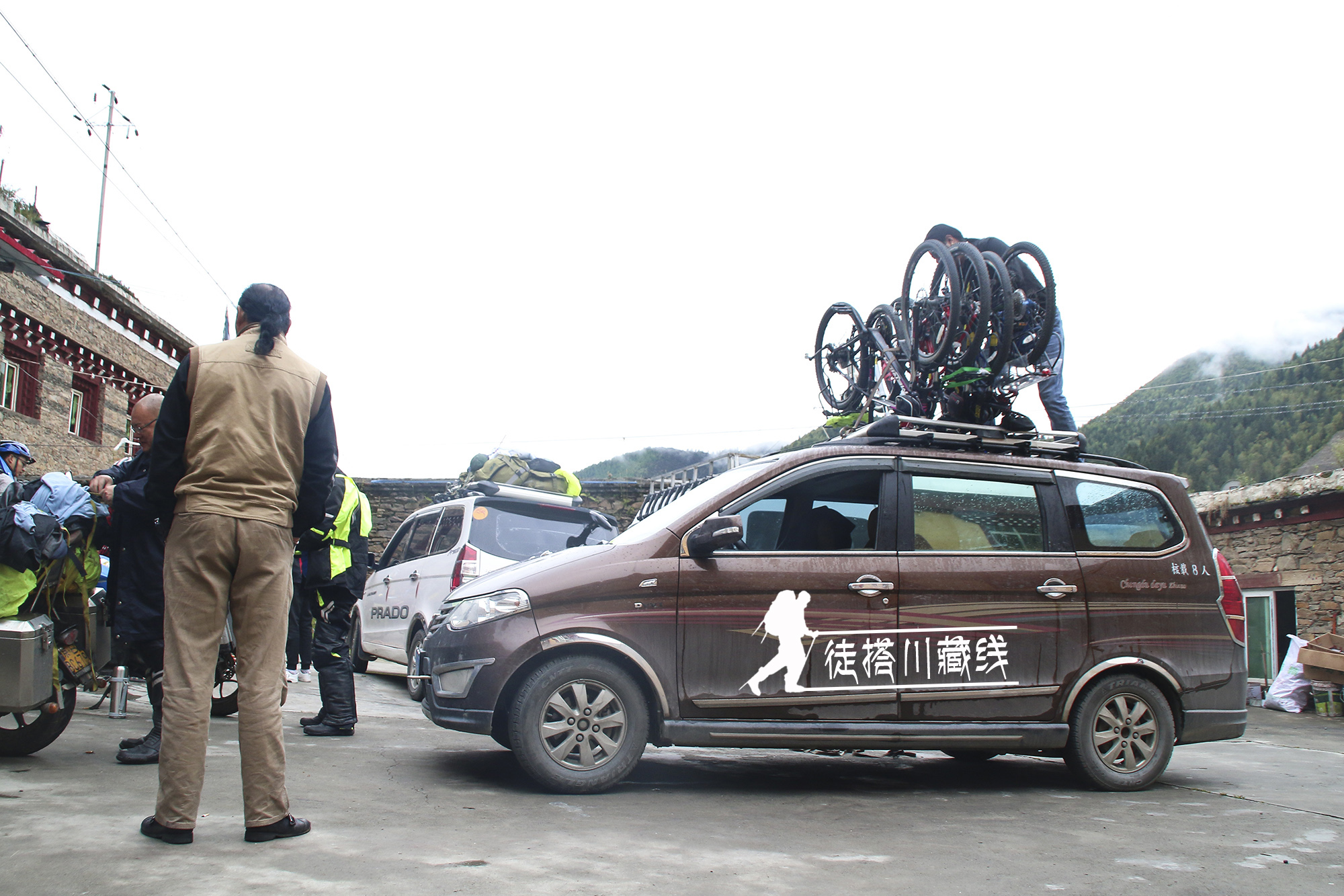 在公路边休息的时候,一位甘肃牌照的轿车停下来给我们加油,问我们有什么需要帮助的,我们说想搭车去理塘,开车的闫大哥果断同意了。上车才发现他的车上已经捡了一个女生,她是北京到成都,从成都准备骑单车去拉萨,结果骑到雅江就坚持不下去了,把单车寄回家,自己改成搭车去拉萨。