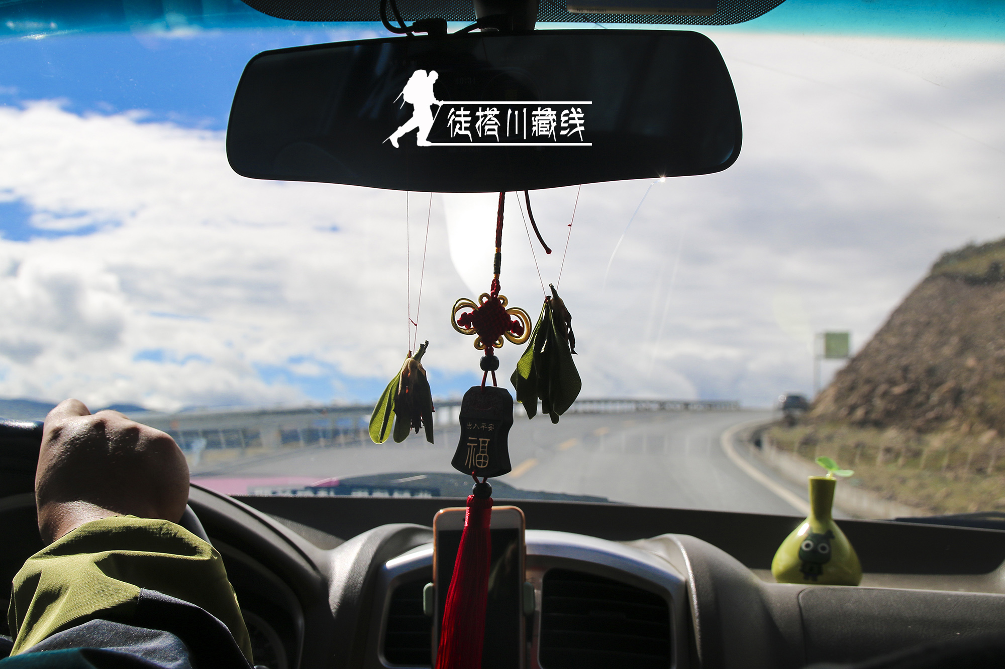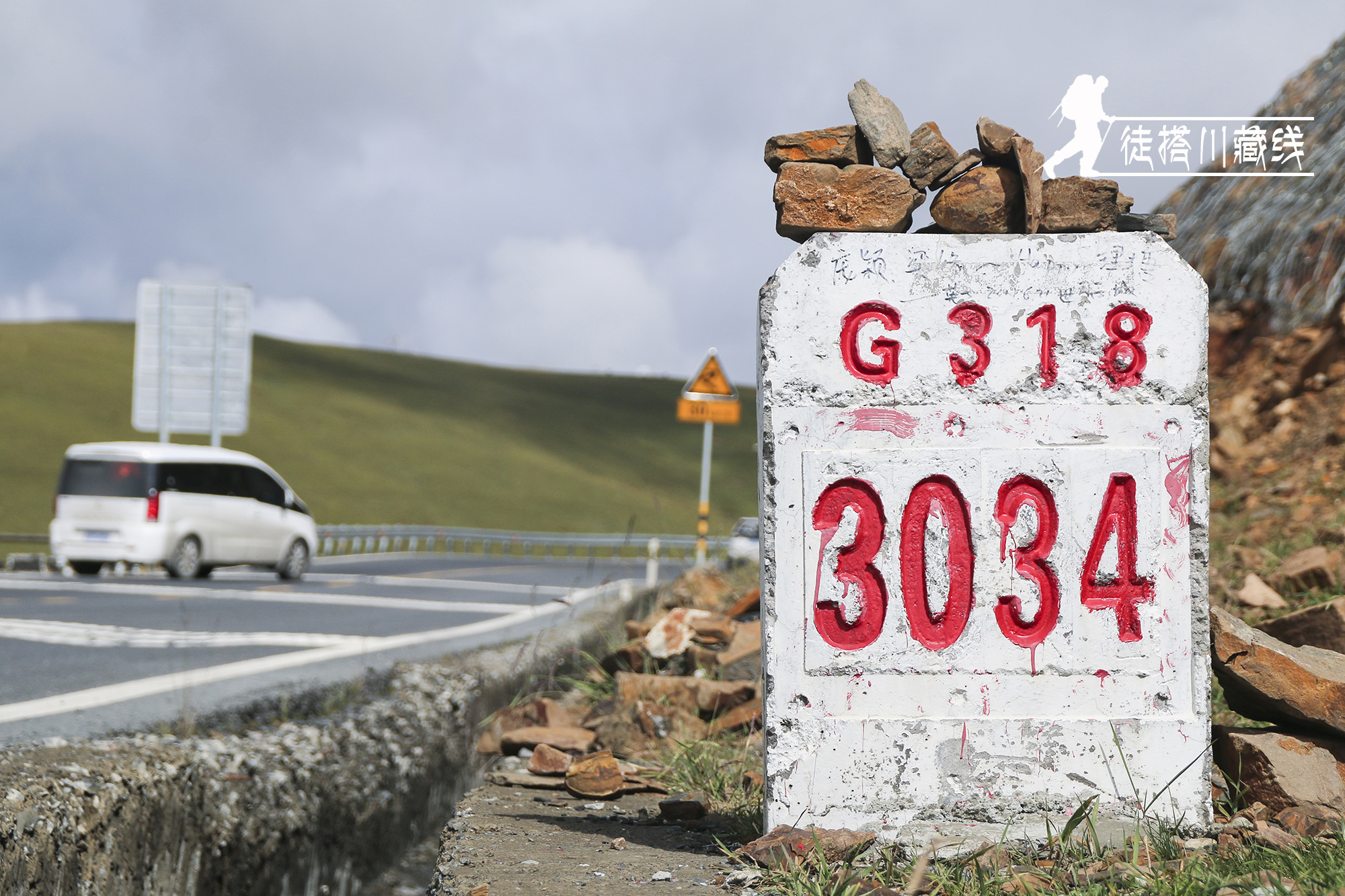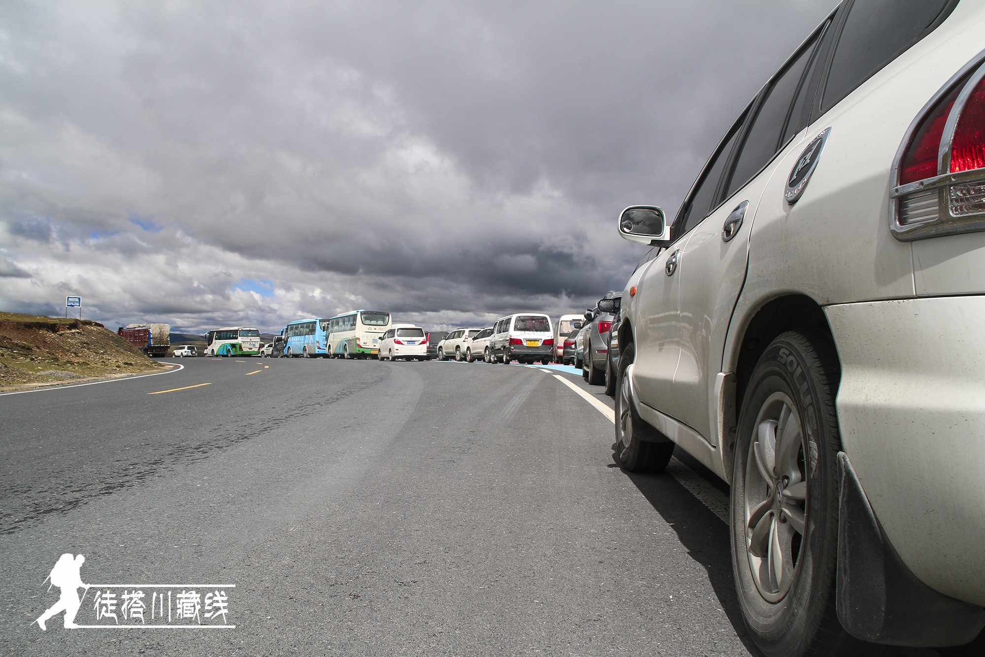 搭我们的这闫大哥小时候生活在四川,后来工作了就一直在甘肃。结婚十多年一直忙于工作,没有机会出来旅行。这次跟公司请假45天出来玩,一个人,一辆车,计划川藏线进,青藏线出。前几天已经自驾走317到过色达。在路上遇到大雨,山上石头掉下来还砸坏了挡风玻璃。