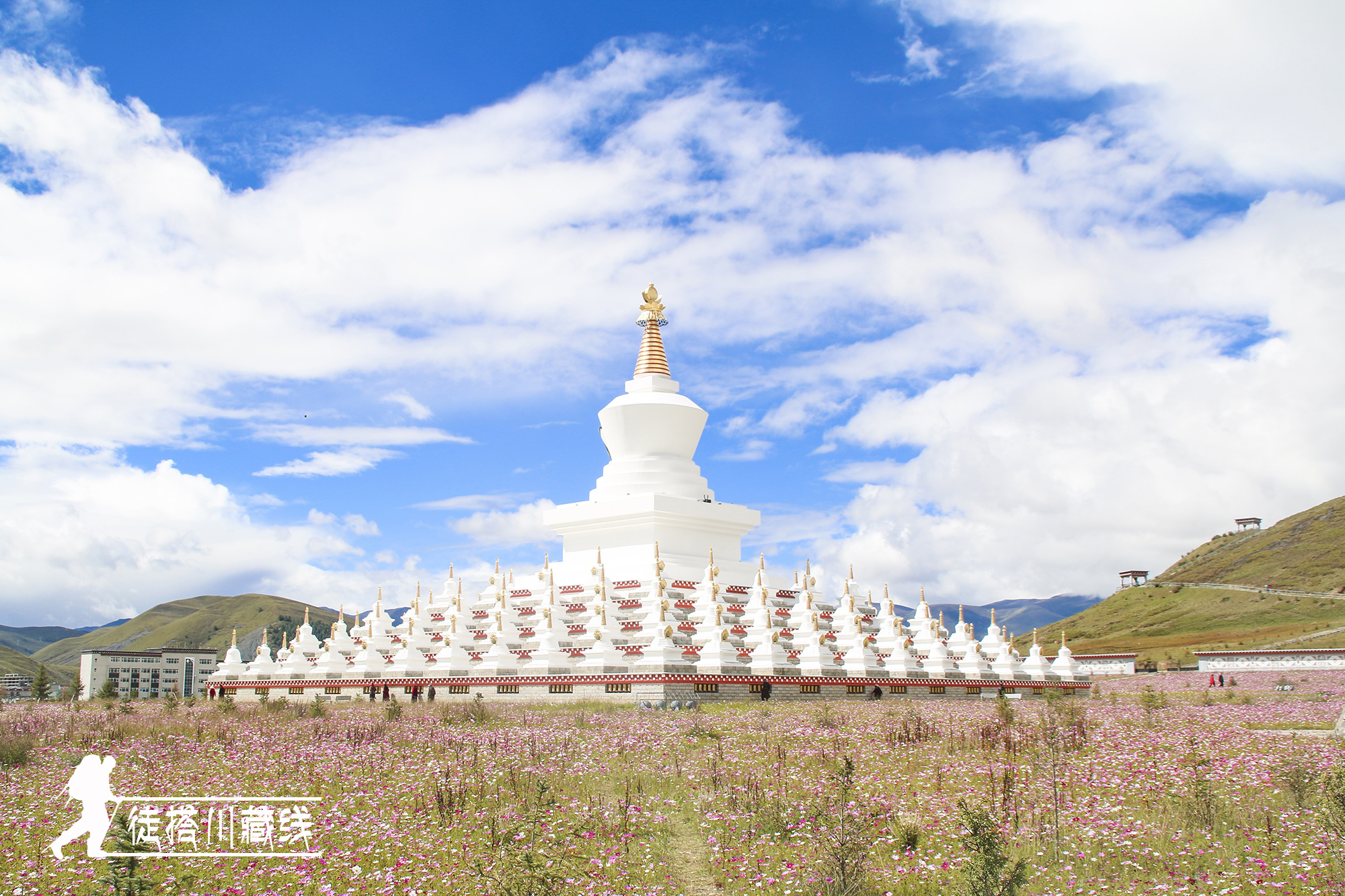 稻城白塔,尊胜塔林。洁白的佛塔,佛塔之上,天空蓝得那么纯粹,佛塔之下,信众转得那么虔诚。