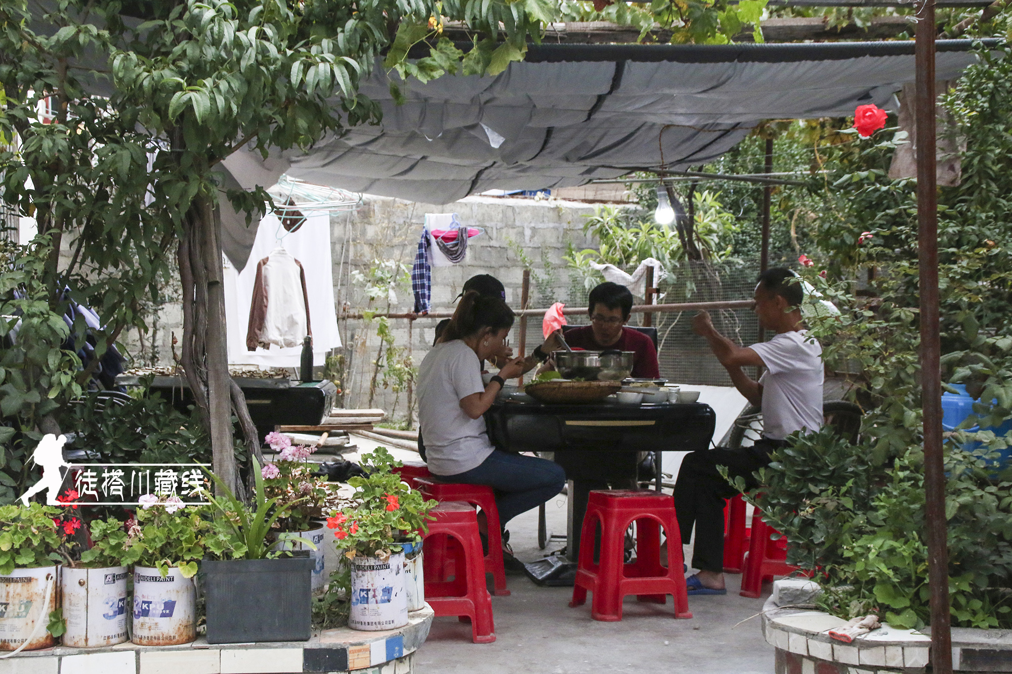 葡萄架下吃火锅,出发以来,吃得最奢侈的一顿,从此之后我的背包又轻了一斤。