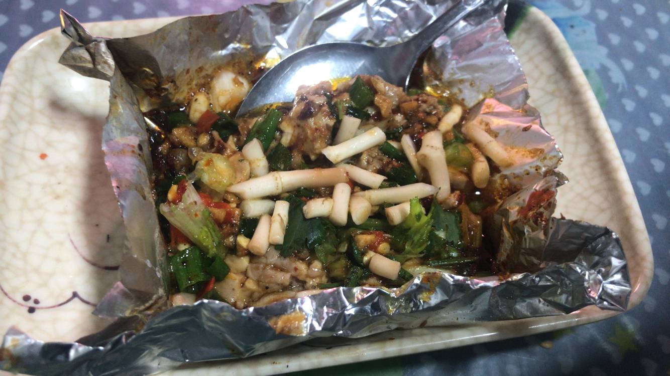 晚饭在云大旁一家锡纸花甲店解决的。傣味,酸酸甜甜的,可能是为了压腥味吧,蒜泥放的有点多,饭后我就买水去了。