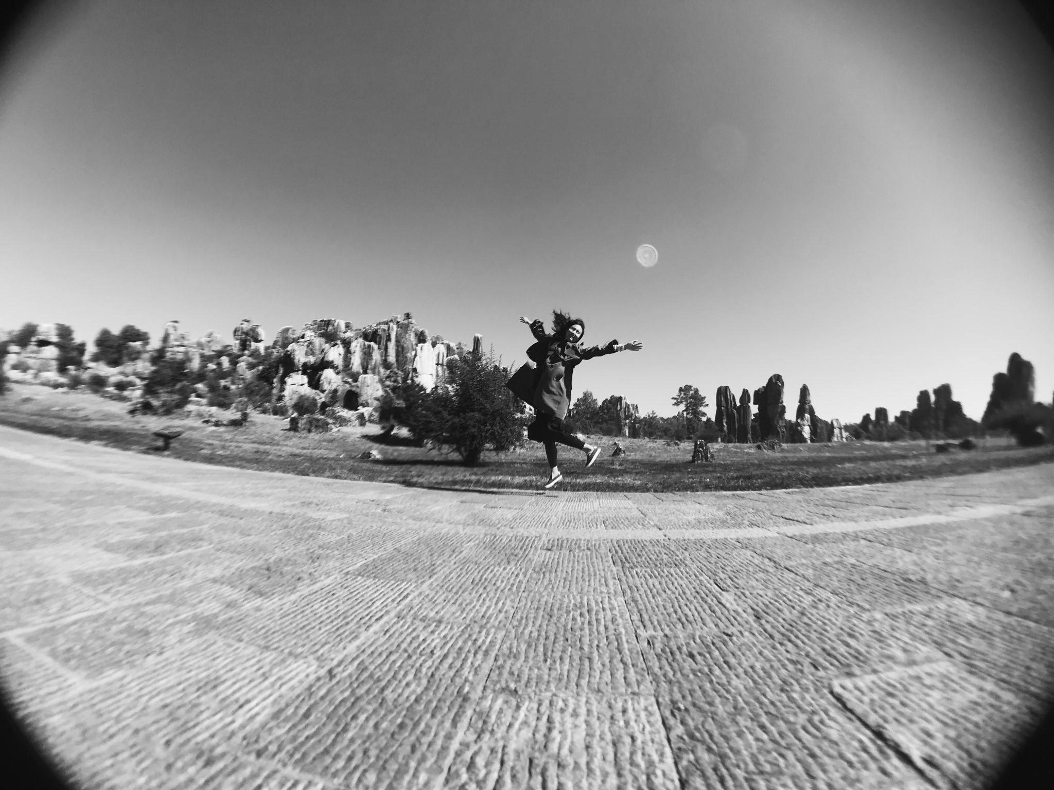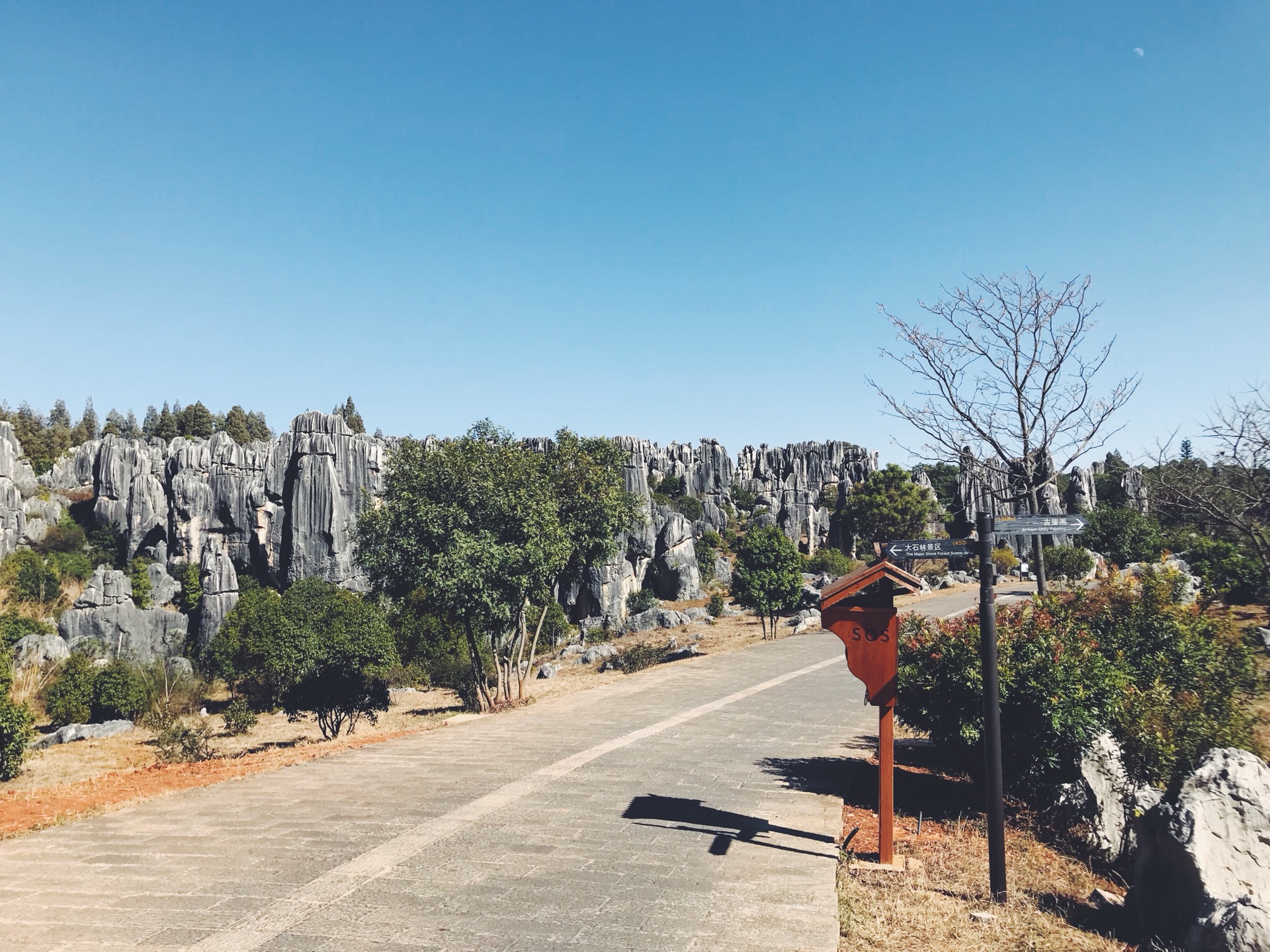 沿着公路顺着石林的走,此时已经快下午两点了。走过望夫石,前方有个观景台。
