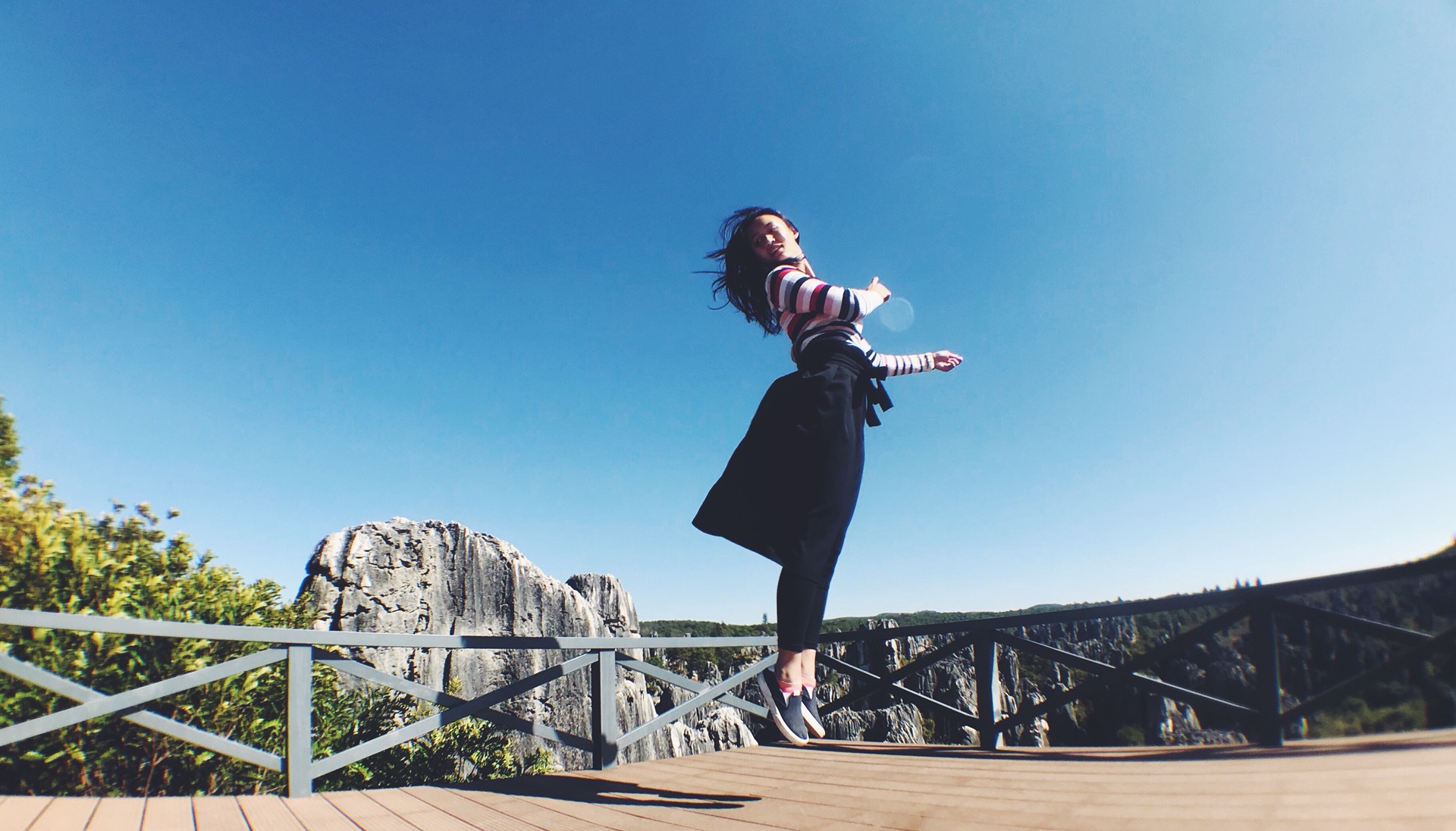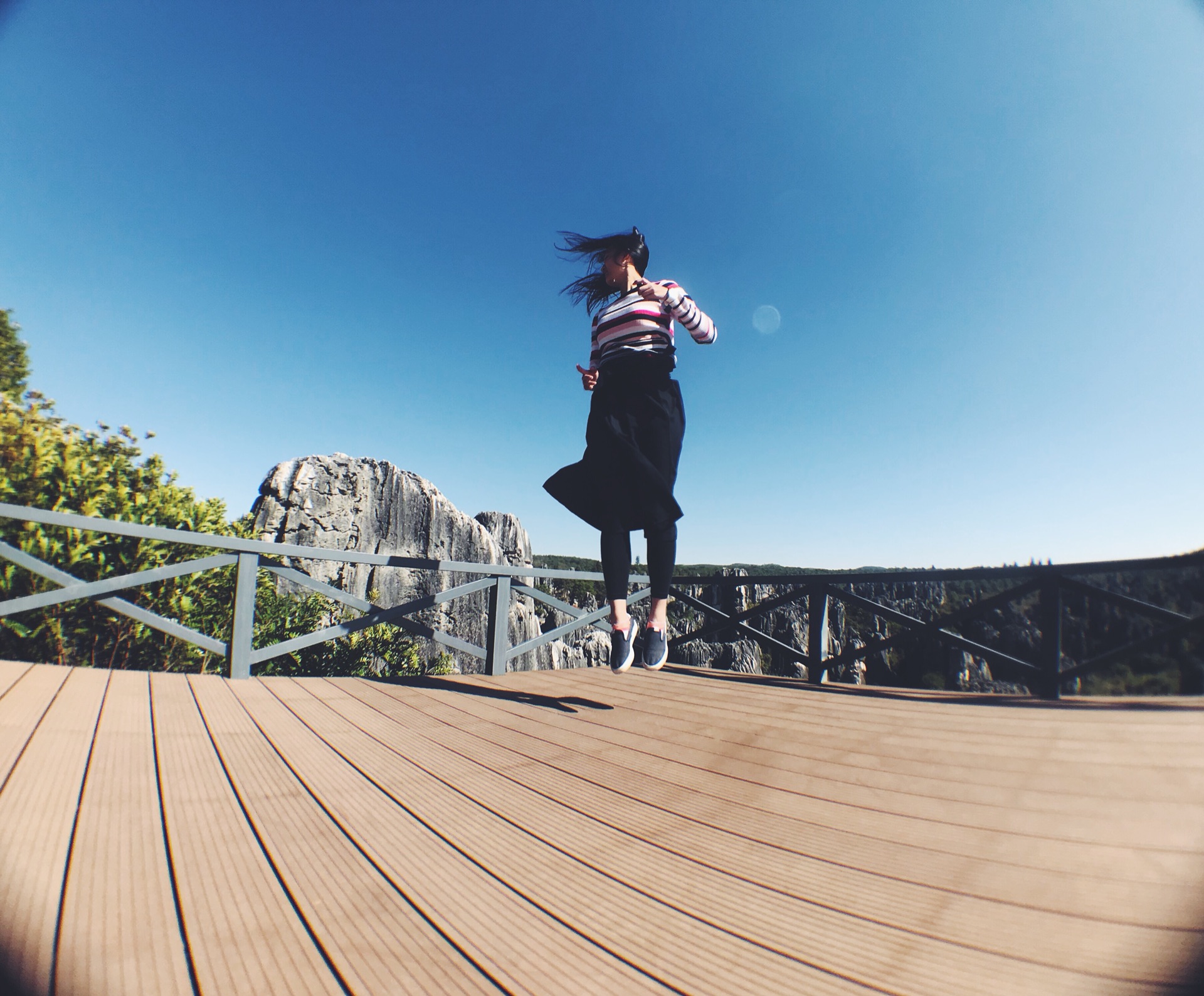 爬到上面,也可以好好的欣赏石林全貌,风吹起衣边,笑挂到嘴角。