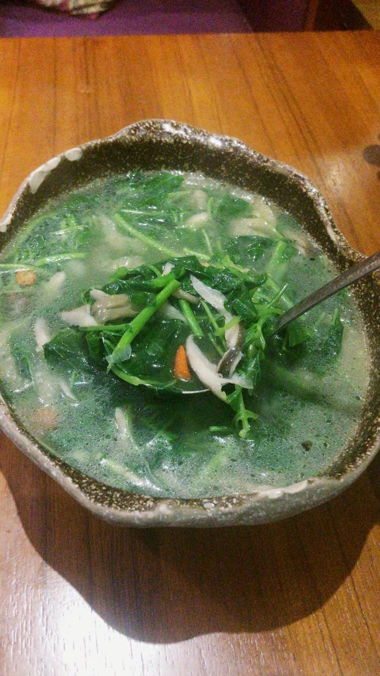 这个杂菜汤给我留下了深刻的印象啊,我,一个四川人,挑着筷子,把小米辣一个一个,从汤里捻出来。