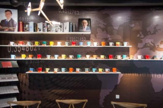 最值得一提的是这里满满的一面咖啡杯墙,其实每个咖啡杯前都有一位金融人的信息,姓名、职位、职务讯息一目了然。如果你想要与他扩展人脉,只要扫描杯子前面的二维码,你便自然与他就建立起了联系。