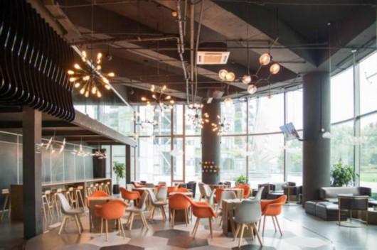 如点点星光点缀其间的灯饰,大面积的落地玻璃窗显得这里窗明几净,沙发和座位舒适惬意,壮美的大面积绿植和浦江景观视角……这间开在东大名路588号1楼的泛合金融咖啡,是一个金融人士交流的咖啡空间。
