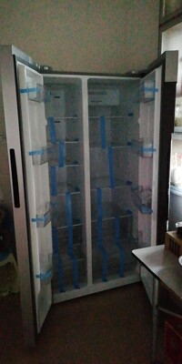冰箱很大气!非常喜欢!是我想要的宝贝!发货很快!工作人员服务很认真!给个赞!送货速度真快,冰箱这么大件的东西,隔天就送到了,用了一段时间才来评价的,银色的冰箱外关时尚大方,储物空间很大,完全够用了,满分好评了!!物流挺快的。很快就送到家了。冰箱也很大,空间充足,感觉该不错的。冰箱太大辛苦送货师傅和售后师傅了。还未使用用后在追评!对比了好久挑了这款 买时和某东一样的货价都一样 只是某东那款是白色的 物流之所以扣分是因为冰箱搬进家时把我的复合地板上的扣条弄凹进去了 有点变形有点丑 看得出有明显的印记 宝贝暂未发现问题 这个尺寸进我家门也刚刚好 还是很不错的 要是推的时候多抬一下就不会把扣条弄出凹印了 这点还是要改进的 那么大件弄不动就派两个人呀 那么重的东西 碰出问题也麻烦 希望耐用吧 以后还会追评的