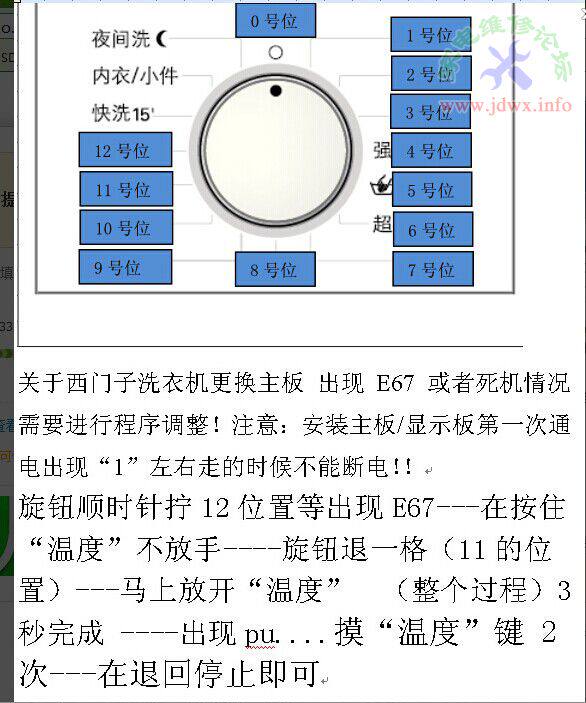请注意》链接卖的西门子原装主板是样板机拆机9成新的。更换后显示E67需要进工厂模式调整一下西门子xqg70-15h560西门子xqg70-15h560。请联系客服提供调整资料,主板保修一年 调整方法见下面